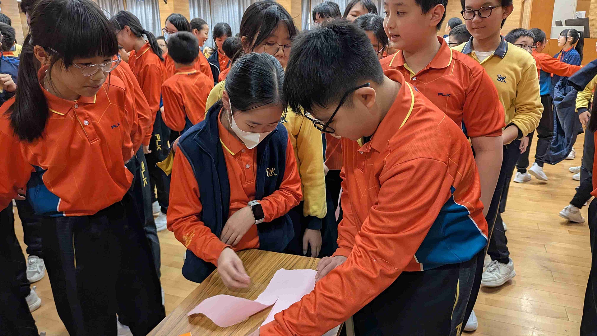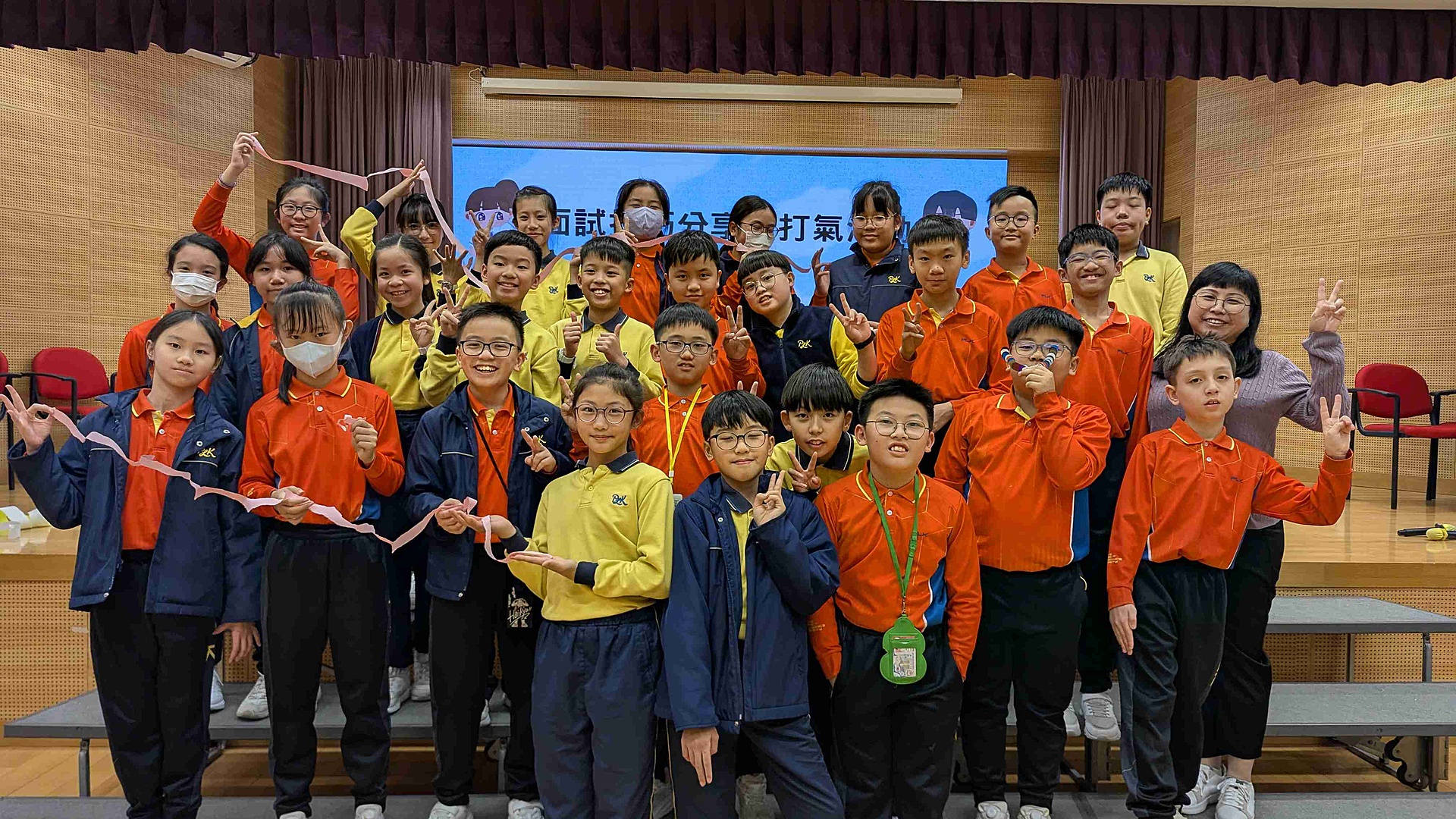 接著,同學們在社工的帶領下先玩「包剪揼大亂鬧」,在輸贏之間學會面對挫折、互相鼓勵💪;之後進行「同心撕紙條」,學生們以單手合力撕出長長的紙條,完成獨一無二的作品。就如每位同學都有自己的特色,只要團結合作,定能發光發熱!✨