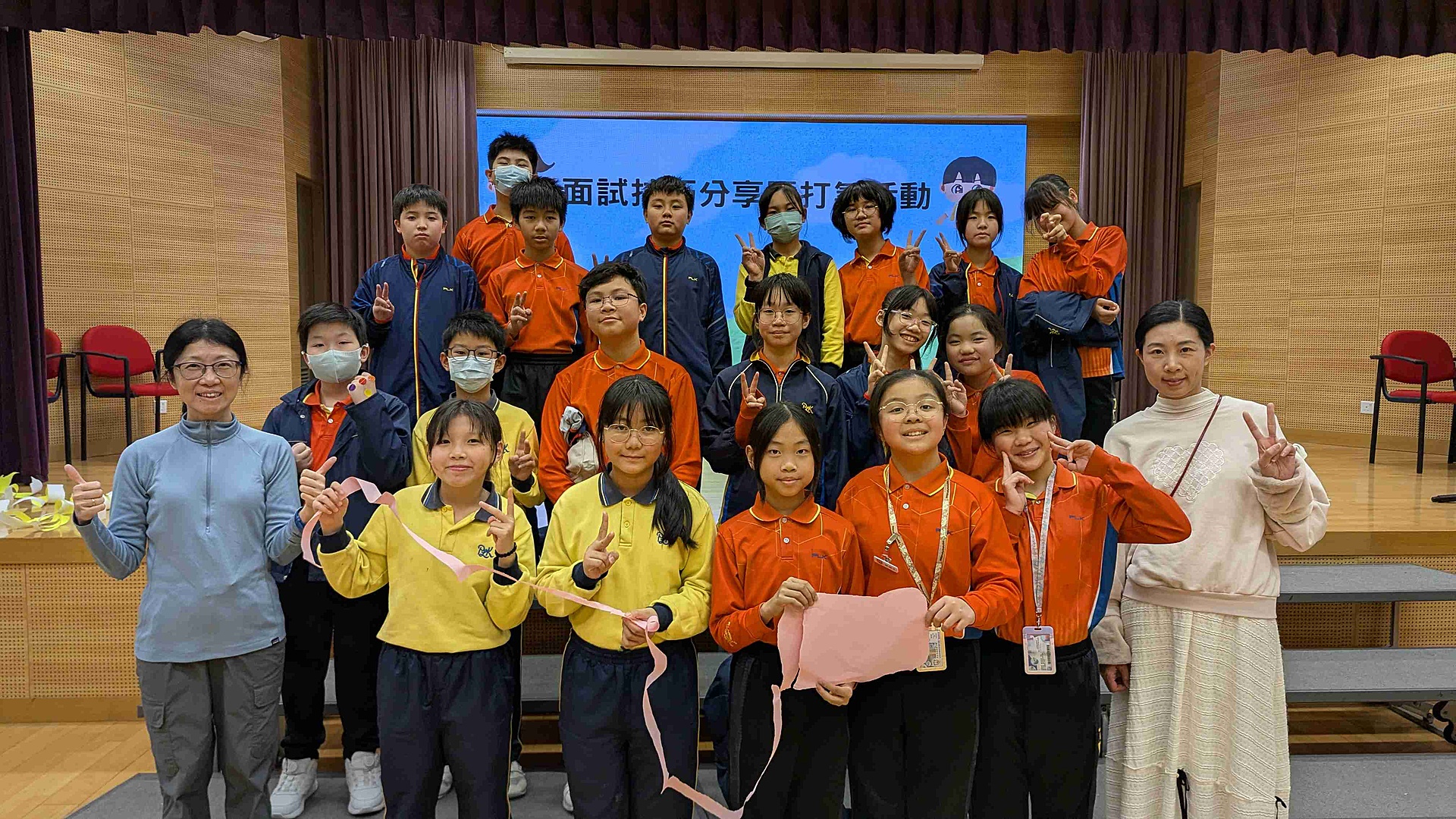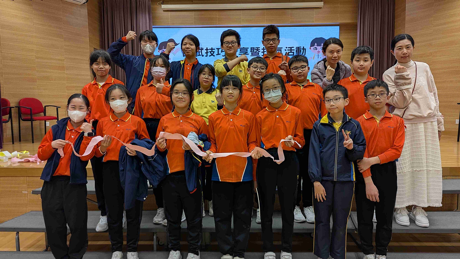 接著,同學們在社工的帶領下先玩「包剪揼大亂鬧」,在輸贏之間學會面對挫折、互相鼓勵💪;之後進行「同心撕紙條」,學生們以單手合力撕出長長的紙條,完成獨一無二的作品。就如每位同學都有自己的特色,只要團結合作,定能發光發熱!✨